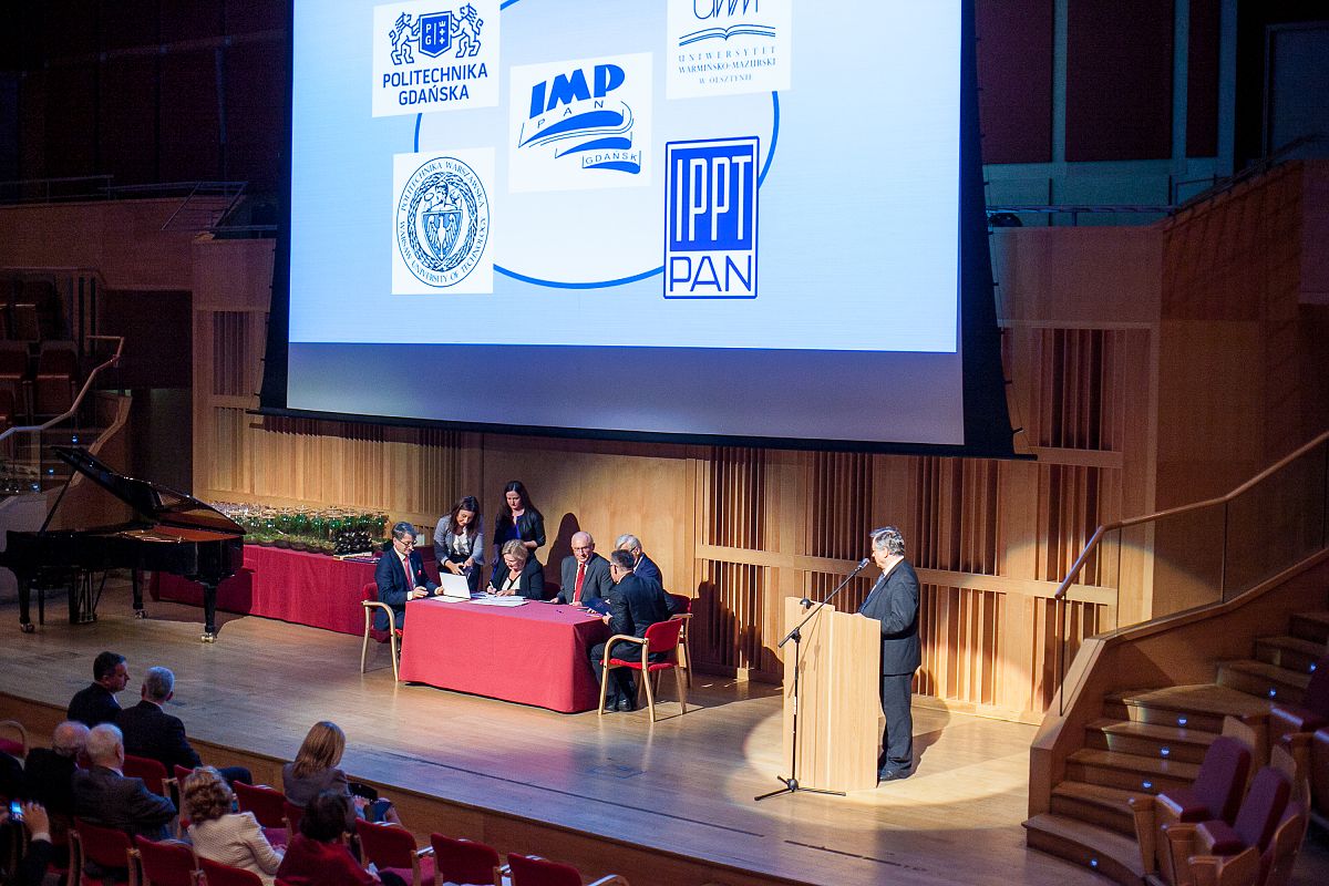 The next point of the ceremony was the signing of the Cooperation Agreements with the leading Scientific Units in Poland: the Institute of Fundamental Problems of Technology of the Polish Academy of Sciences, which was represented by the Director, Prof. Tadeusz Burczyński, University of Technology of Gdańsk, represented by the Rector, Prof. Jacek Namieśnik, University of Warmia and Mazury, represented by the Rector of Science, Prof. Jerzy Jaroszewski, PhD and Warsaw University of Technology, represented by Prof. Dorota Chwieduk, Deputy Director of the Institute of Heat Technology of Warsaw University of Technology.
