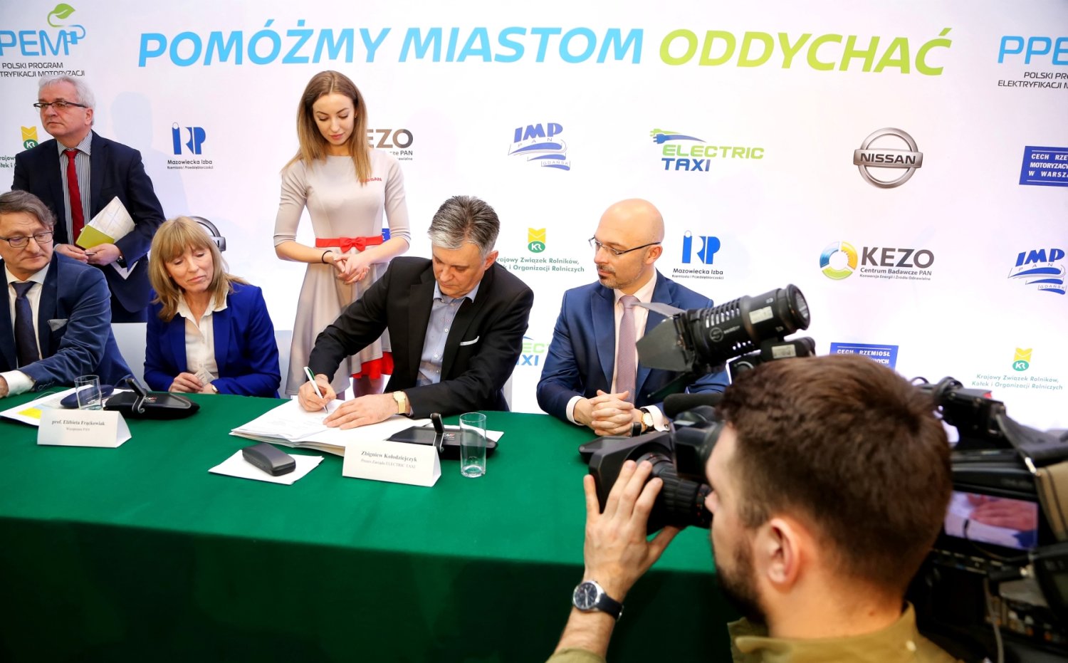 On 1 March 2017, a meeting was held at the Research Centre of the Polish Academy of Sciences – KEZO, dedicated to clean technologies in energy and transport under the motto “Let us help cities breathe”. During the meeting, the potential of the Research Centre of the Polish Academy of Sciences was presented, the offer of the original micro-cogeneration technology together with the electrofilter system in the context of low emissions developed by the Institute of Flow Machines of the Polish Academy of Sciences in Gdańsk and the Polish Electrical Engineering Program PPEM was initiated. The main point of the program was the solemn signing of the PPEM agreement combined with the transfer of the first batch of electric taxis which were the beginning of the electric fleet working in the city of Warsaw.