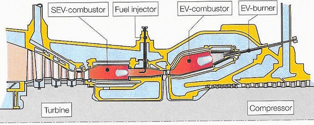 Turbine GT26 modelled in COM-GAS (right picture)