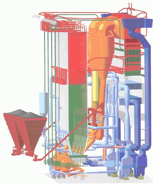 Fluidizing Bed Boiler modelled in COM-GAS (right picture)