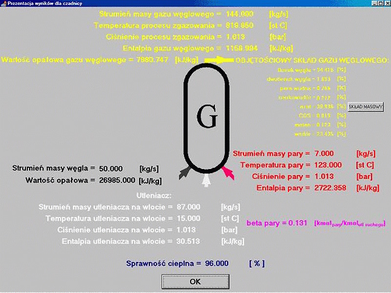 Gasificator modelled in COM-GAS