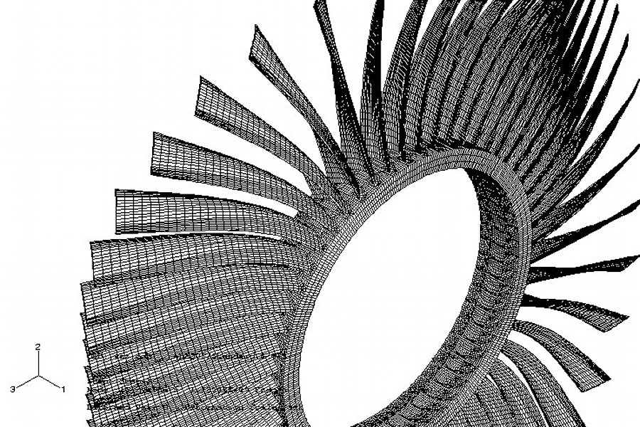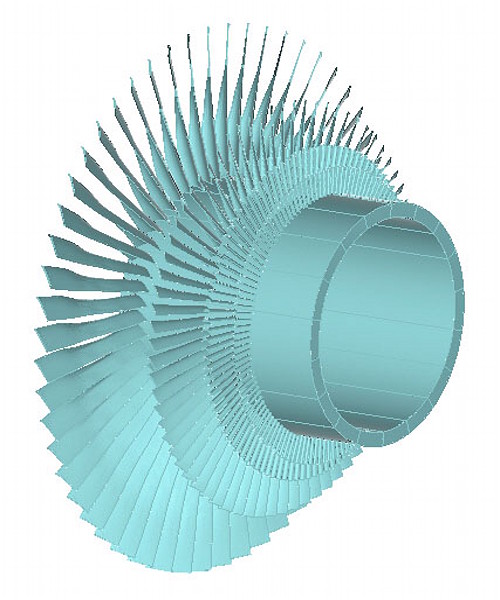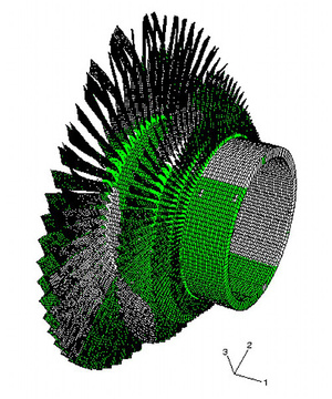 The frequency of the set of rotor and blades of the LP part of 200 MW steam turbine has been computed. Half of the rotor and the simplified set that involved ring with 53 blades of the last stage have been considered.