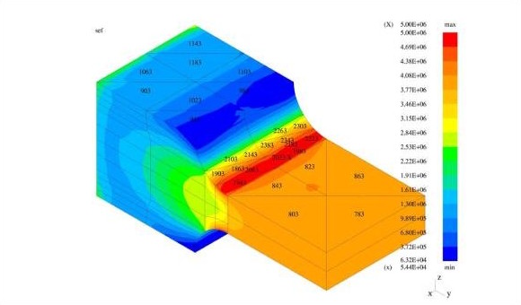 Effective stresses within a complex structure after hp adaptation