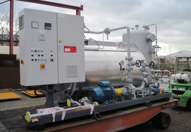 - Heat source: thermal oil Veco 5HT, heat power 280 kW, temperatures inlet/outlet: 170oC/110oC