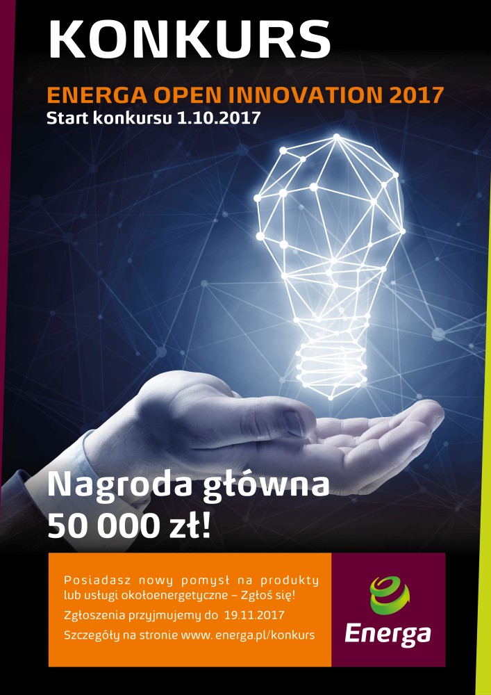 Energa SA organizuje konkurs ENERGA OPEN INNOVATION 2017, w którym do wygrania jest 50 000 zł. Konkurs wystartował 1 października 2017 roku. W konkursie mogą wziąć udział start upy, przedsiębiorcy, jednostki naukowe, konsorcja i osoby fizyczne.