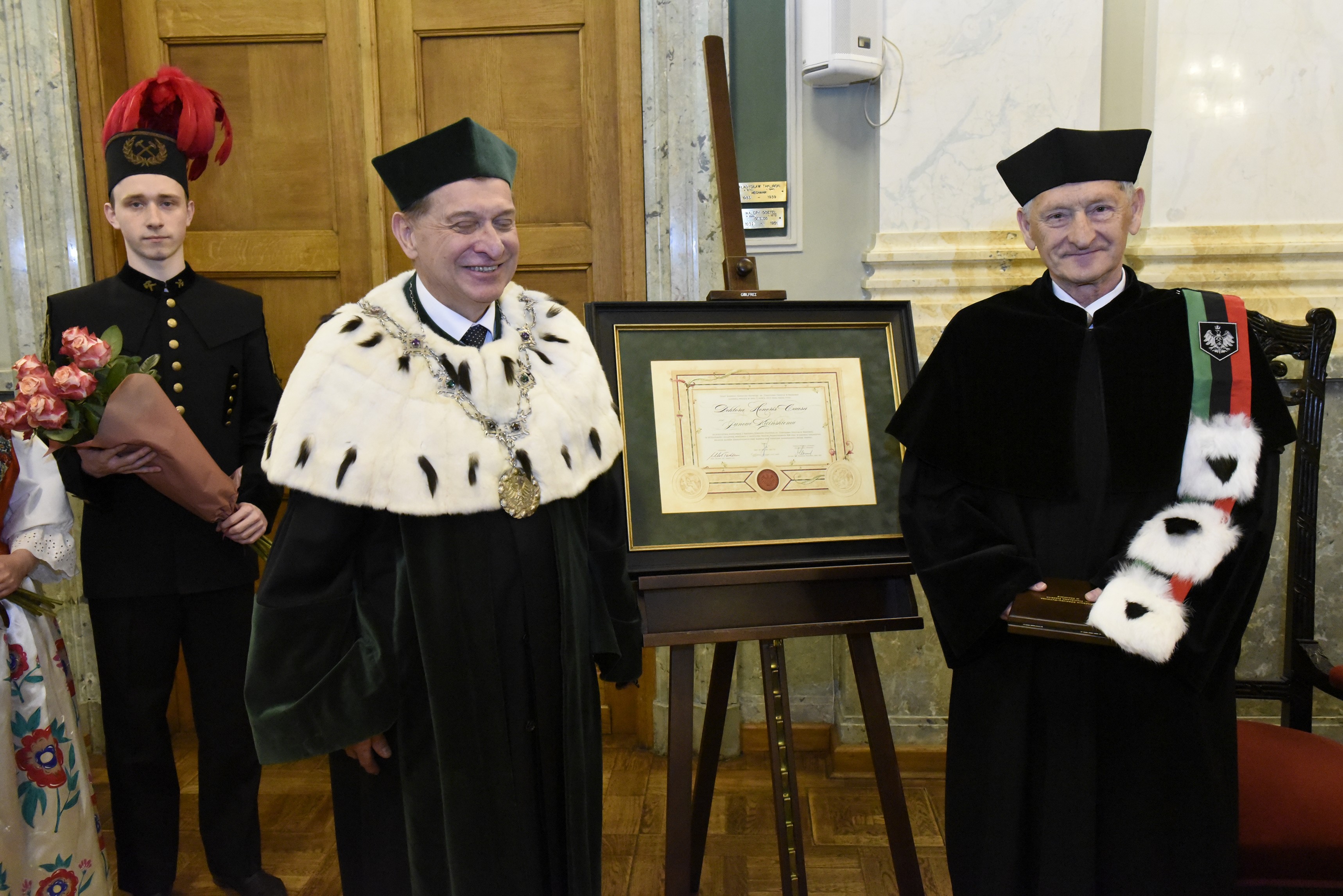 Uroczystość nadania tytułu doktora honoris causa AGH prof. Janowi Kicińskiemu odbyła się 19 maja 2023 r. o godz. 12 w auli AGH.