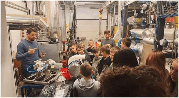 21 listopada 2023 r. uczniowie Szkoły Podstawowej im. Tysiąclecia Państwa Polskiego w Dzierzgoniu, w ramach projektu „ekoPracownia – Zielony Zakątek”, odbyli wizytę w Instytucie Maszyn Przepływowych PAN w Gdańsku. Podczas wizyty wysłuchali wykładu prof. Dariusza Kardasia na temat działalności instytutu, a także zwiedzali wybrane laboratoria, w tym laboratorium termicznej konwersji biomasy, laboratorium mikroturbin oraz laboratorium szybkiego prototypowania – wydruku 3D. W zwiedzanych laboratoriach uczniowie zapoznali się z różnymi rodzajami biomasy, procesami termicznymi oraz zasadą działania turbin parowych. Mieli również okazję porozmawiać z pracownikami IMP PAN, którzy opowiedzieli im o swojej pracy naukowej. Uczniowie wykazali bardzo duże zainteresowanie omawianymi zagadnieniami naukowymi oraz zadawali wiele ciekawych pytań.