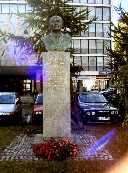 „Robert Szewalski 1903-1993 czł. rzecz. PAN, Profesor Politechniki Lwowskiej i Gdańskiej. Konstruktor pierwszej turbiny parowej. Twórca polskiego przemysłu turbinowego i Instytutu Maszyn Przepływowych Polskiej Akademii Nauk w Gdańsku. W stulecie urodzin – Gdańsk 2003”