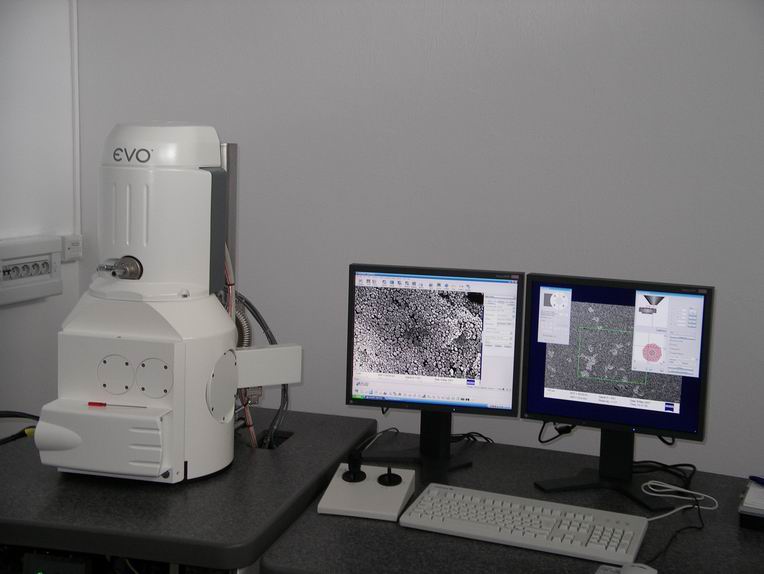 1. Skaningowy mikroskop elektronowy (SEM Zeiss EVO-40) do badania topografii i kontrastu materiałowego warstwy.