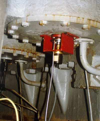 Układ do pomiaru microprzemieszczeń czopa łopaty kierownicy pompturbiny.