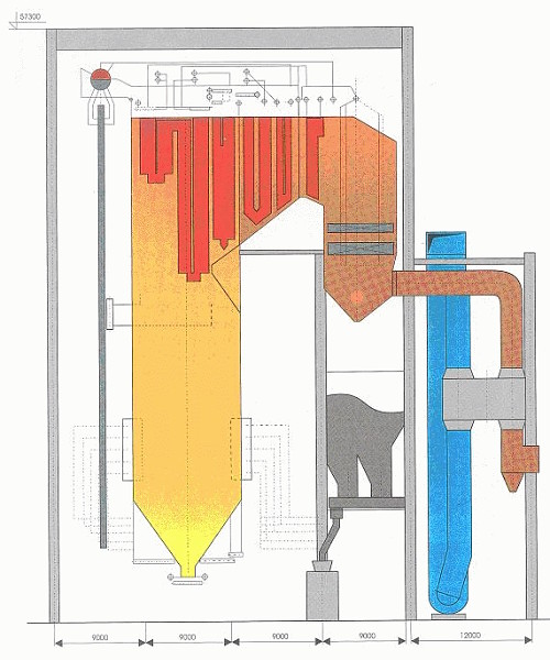 Fluidizing Bed Boiler modelled in COM-GAS (right picture)
