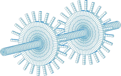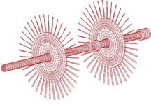 - Sokołowski J., Rządkowski R., Kwapisz L.: Frequencies and Modes of Rotating Flexible Shrouded Bladed Discs-Shaft Assemblies, TASK Quarterly 7, 2, 215-231, 2003. (Rys. 4)