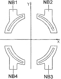 b) Schemat rozmieszczenia skrzynek dyszowych na obwodzie stopnia regulacyjnego