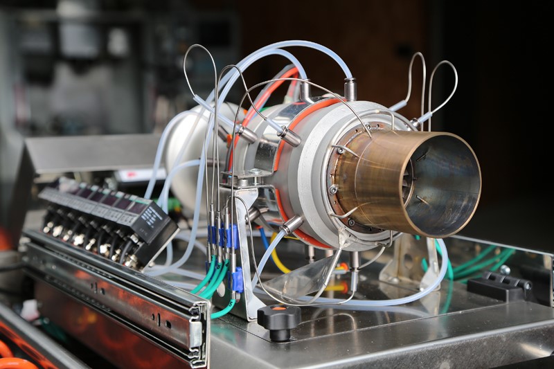 Układ służy do badania procesów spalania gazów niskokalorycznych – biogazów w silnikach spalinowych turbinowych. Stanowisko obejmuje: