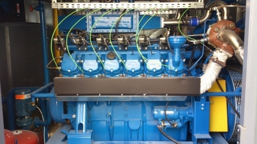 - Instalację silników spalinowych tłokowych - silnik spalinowy CEZ o mocy 60 kW zasilany paliwem syngazowym, silnik spalinowy PERKINS o mocy 30 kW zasilany paliwem biogazowym,